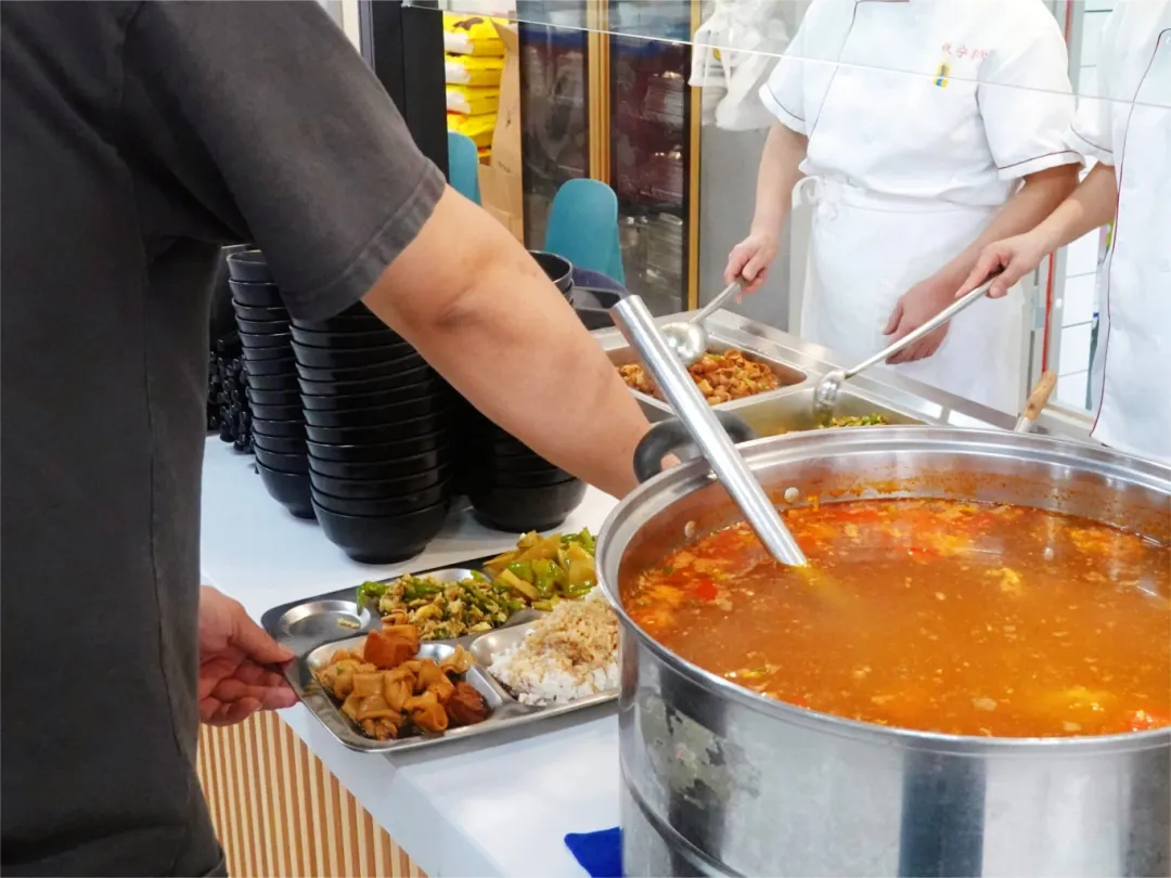 食堂开放时间灵活,解决了师傅们的日常就餐问题。食堂阿姨介绍道,“上午提供包子、粥之类的早餐,中午到晚上9点提供饭菜,15元就能买到两荤一素一汤,开水24小时都有。”
