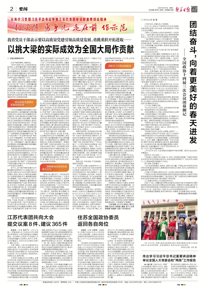 “经济大省挑大梁,必须坚持党的全面领导,以高质量党建引领高质量发展。”习近平总书记在参加江苏代表团审议时的重要讲话,深刻阐明了加强党的建设与推动高质量发展之间的内在逻辑,为江苏推动高质量发展、为全国发展大局作出更大贡献指明了方向。