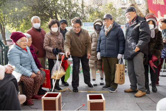 投壶、套圈等传统小游戏吸引了不少孩子和家长参与,“马上有福”趣味打卡活动让欢笑声此起彼伏,获胜者还获得了马年日历、福袋等小礼品。