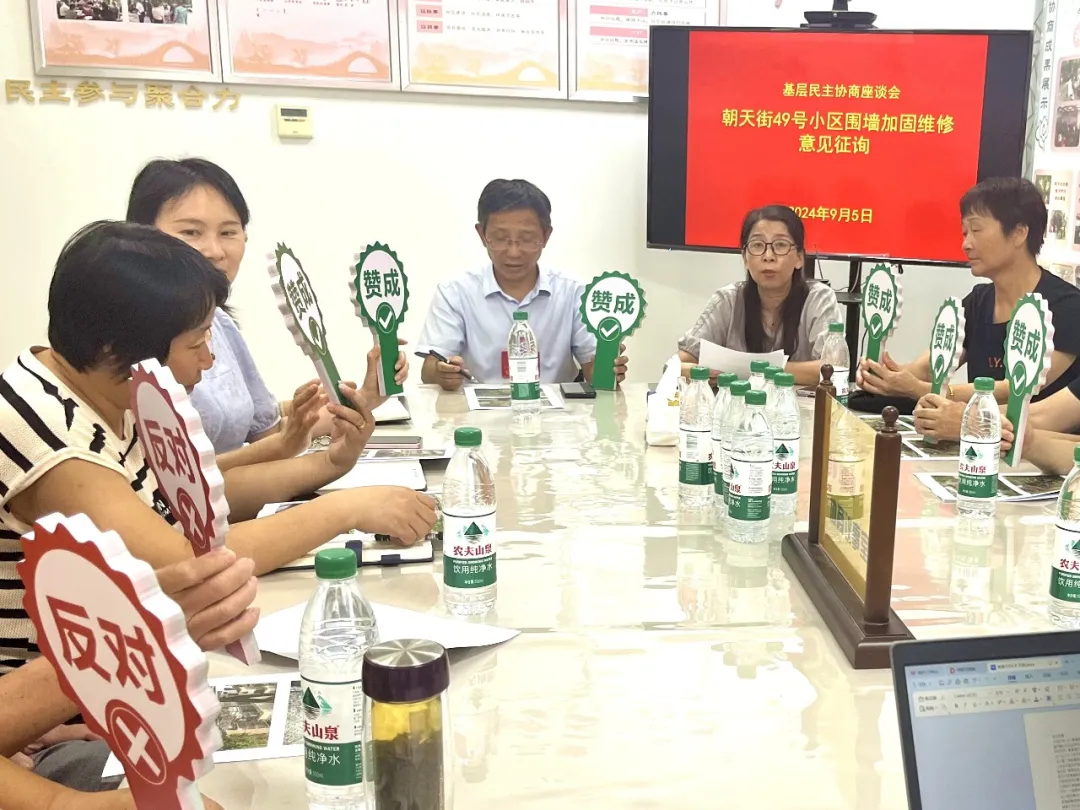 根据居民需要设立一级“点位议事”,位于滁河步道“沿河小意”、汇锦水岸城“兰亭小意”,设1名社会组织成员为点位长,1名热心居民为副点位长。截至目前,防汛防台调度、文体活动策划、志愿服务参与等事项均已在点位解决,实现灵活议事、轻松议事、自然议事。以网格为单位设立二级“网格议事”,位于物业办公室(计划),设小区网格员为点位长,1名热心居民为副点位长。朝天街49号小区出新过程中各种问题层出不穷,社区当即召开议事协商会就小区出新方案展开讨论,邀请居民代表及社区工作人员共同参与。代表们集思广益,踊跃发表意见和建议,为小区出新的实施建言献策。经过讨论参会的居民对协商结果表示一致同意,并对此次开展的小区出新给予高度肯定。“协商议事”逐渐成为人民群众的“连心桥”。在社区层面设立三级“共议棠”阵地,负责协商社区级重大事务、疑难问题等。由社区党委领导、居委会牵头、多方主体共同参与,根据需要邀请引导师、律师等专业人员协助主持,依据议事规则共同协商和推进重大公共议题的解决。在“共议棠”,社区组织居民代表、网格员等齐集一堂,围绕社区党群服务中心是否设置老年睦邻点开展协商议事会,针对部分住在社区附近的居民反映新养老服务中心活动室较远,参加活动不方便这一诉求展开讨论,最终确定在社区党群服务中心设置老年睦邻点,得到居民的一致赞同。小区围墙加固维修、居民多年“行路难”、背街小巷路灯安装事宜等问题通过协商均得以解决,开创邻里协商模式是人心所向。