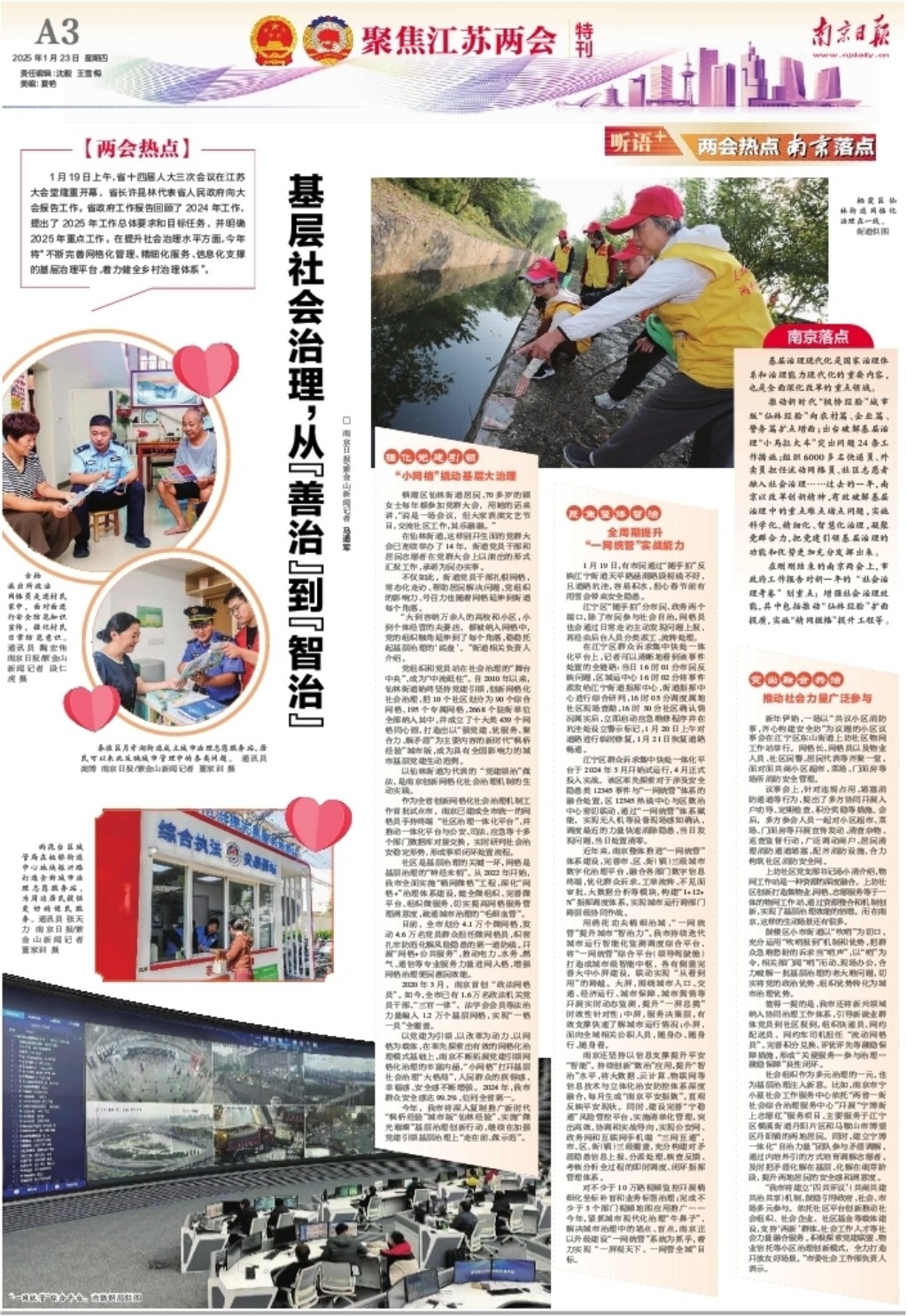 在刚刚结束的南京两会上,市政府工作报告对新一年的“社会治理考卷”划重点:增强社会治理效能,其中包括推动“仙林经验”扩面提质,实施“精网微格”提升工程等。