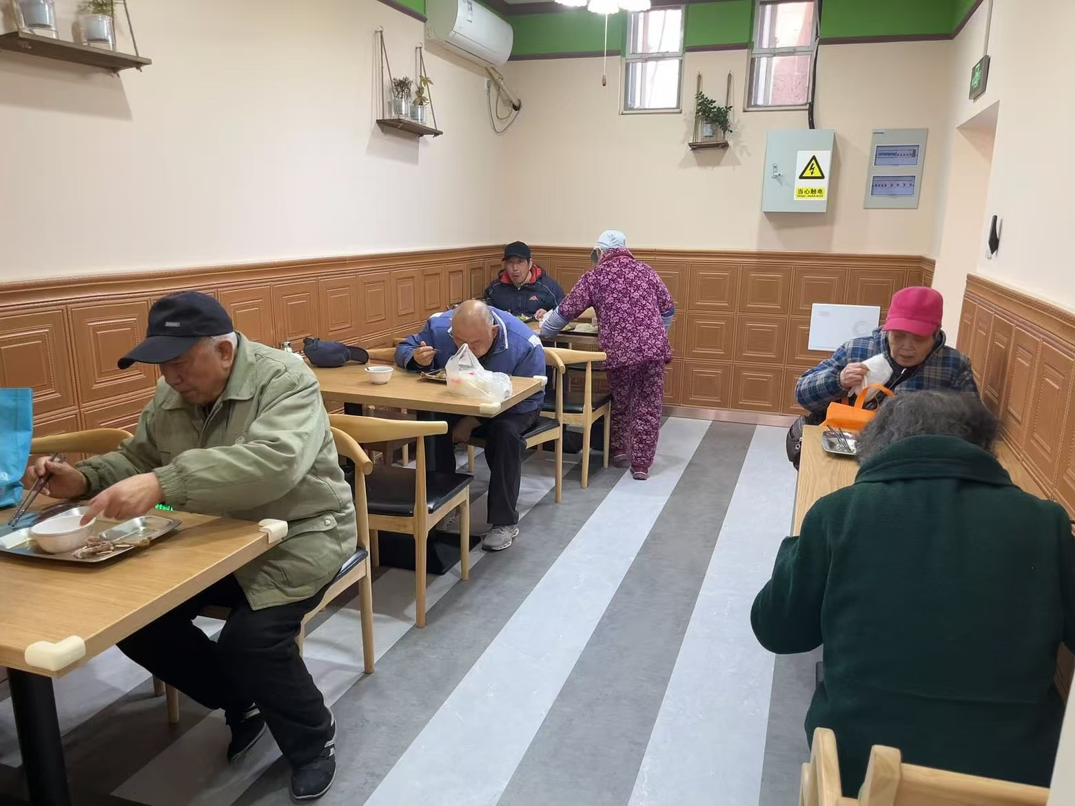 场地是最大的“痛点”,也是最直接的发力点。赛虹桥街道拿出100多平方米的玻纤院社区老办公用房作为食堂场地,并免掉3年租金,帮助食堂在成长初期站稳脚跟。雨花台区民政局给食堂补贴5 万元,老人就餐还有额外补助,60-74周岁老人优惠1元,75周岁以上老人优惠3.5元。