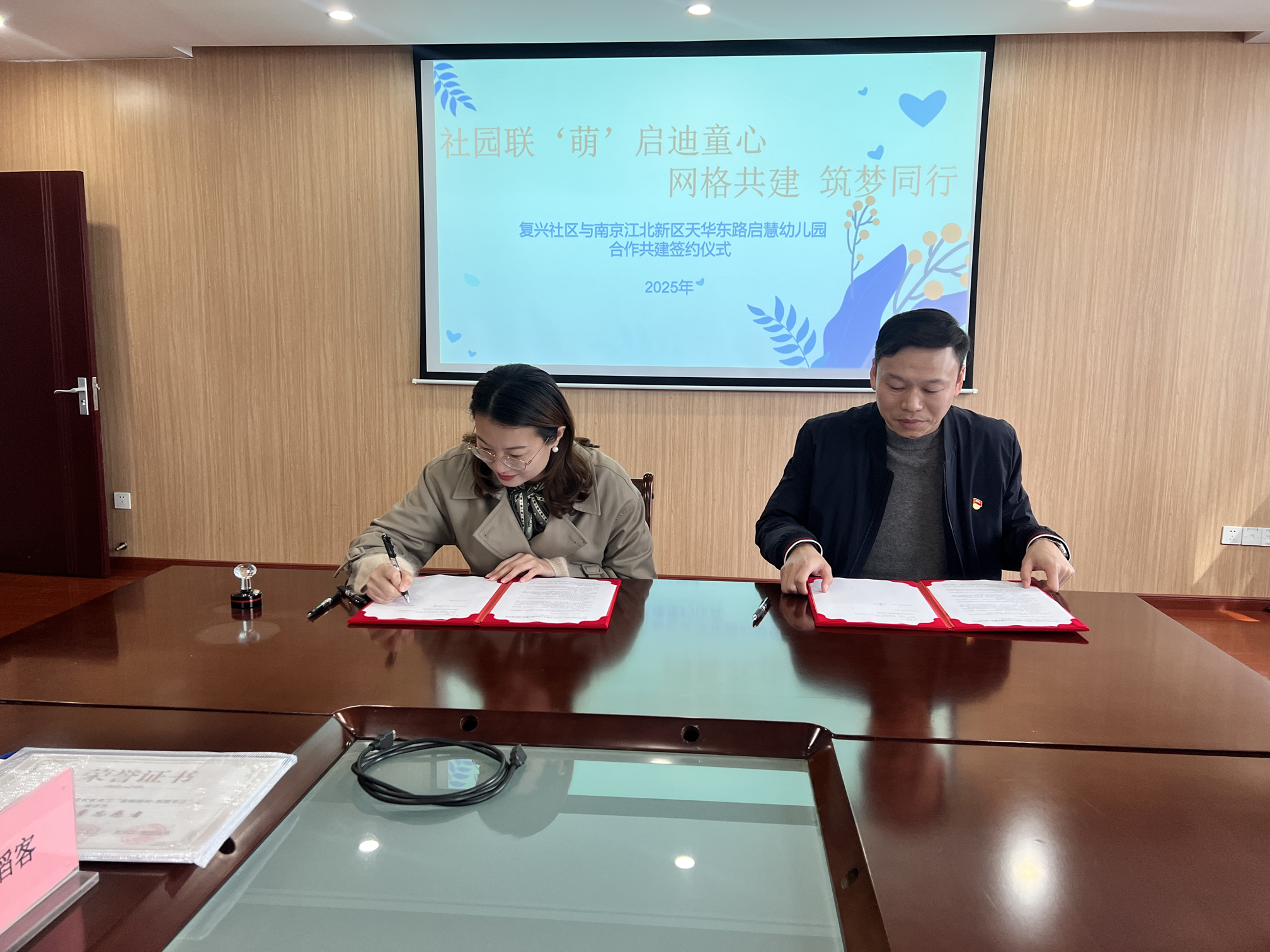 为深化党建引领基层治理效能,激发网格化资源服务潜力,近日,沿江街道复兴社区党委创新工作思路,联动辖区幼儿园以及培训机构签订共建协议,合力打造“社园联‘萌’启迪童心”网格共建项目。