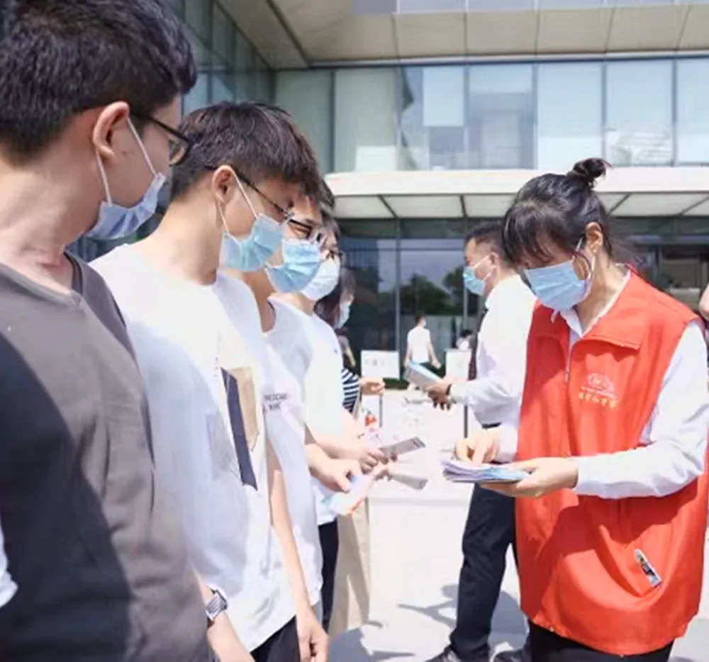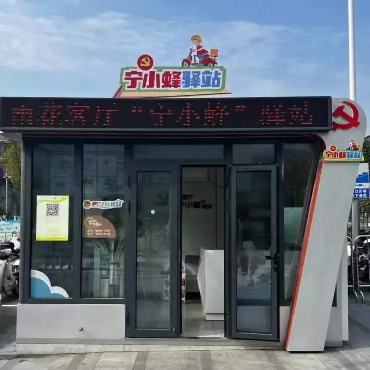 早在2021年,街道党工委就在走访中发现,小哥们面临着停车违规、歇脚没地等实际困难,便在此打造了全市首个“宁小蜂”商圈驿站。不到10平方米的驿站里,有空调、热水、微波炉,成为小哥们的温馨港湾。不久后,全市首家商圈红十字会落地,应急救护演练、红色微课等被送到新就业群体身边。
