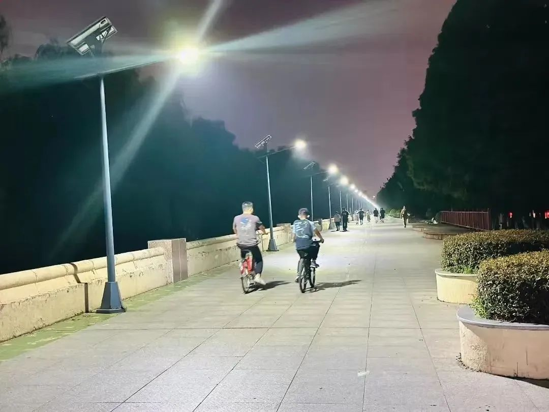 如今,夜幕降临,2.4公里长的江堤大道被白色灯光笼罩,路面清晰可见,这一盏盏路灯,照亮的不仅仅是城市的夜空,更照亮了市民的美好生活。