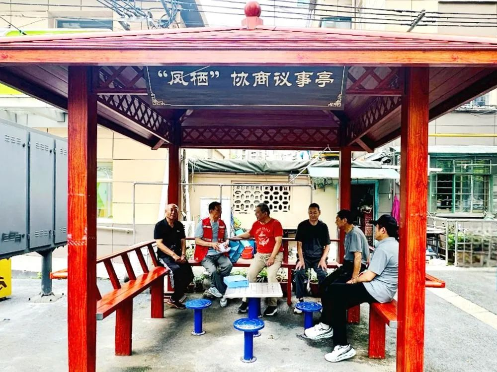 74岁的尹师傅是小区里的“热心肠”,他把自己的建议投进了“金点子”信箱:“能不能把这地儿规整规整?留块地儿给老人遮风挡雨聊家常?” 收到“金点子”卡片后,社区张书记当天邀约尹师傅进行交流。在充分听取尹师傅的“金点子”后,社区党委当即研究并制定规划。次日,社区书记带领网格员前来测量规划场地,并进行初步情况摸底;第三天,网格员、物业工作人员陪同尹师傅,逐户拜访常占空地的住户。经过一次次推心置腹的沟通,原本持反对意见的居民都逐渐理解并支持建亭的决定。一个月后,“矛盾窝”旧貌换新颜,一座朱红色凉亭拔地而起。如今,凉亭成为大家休憩聊天的好去处。83岁的黄奶奶指着凉亭上“凤栖协商议事亭”的铜牌笑着说:“社区真正把咱老百姓的心声落到实处了!”