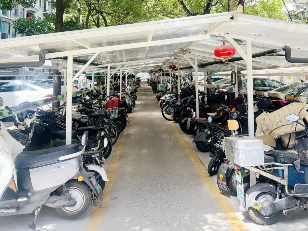 明发滨江新城作为老旧小区,长期面临电瓶车充电难问题。此次改造重新规划,新增并改建电动车车棚122处,一举解决停车与充电两大难题。