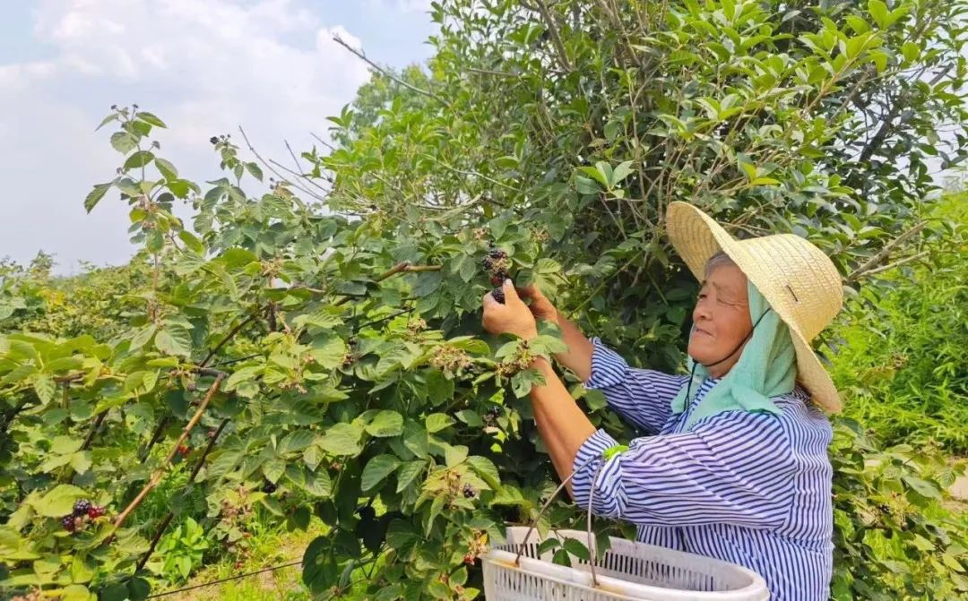 “最近天气热,我们都是天蒙蒙亮就开始干活了,每年6月底至7月底是黑莓成熟收获期,手脚要快,果子可不等人啊!”丁伯秀告诉记者,她在小浆果基地工作已近3年,春施肥、夏采摘、秋冬修枝,一忙就是一整年。“开白花结青果,果子由黄转红再转黑,就是熟透了,吃起来才酸甜可口、汁水十足。”丁伯秀说,摘一篮黑莓可以拿到十多元,自己每天可以摘15篮,日子越来越好。