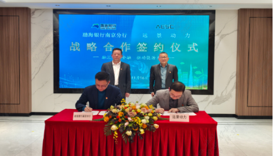 11月16日,渤海银行南京分行与远景动力技术(江苏)有限公司在江阴隆重举行战略签约仪式。渤海银行南京分行行长王兆义、远景动力财务总监陈斌出席活动并就银企协同发展展开深度会谈。远景动力江阴基地副总经理徐剑、党总支委员赵彦彪,渤海银行南京分行副行长侯增耀、行长助理秦奋、市场营销总监张惠及无锡分行相关负责人共同参会见证。