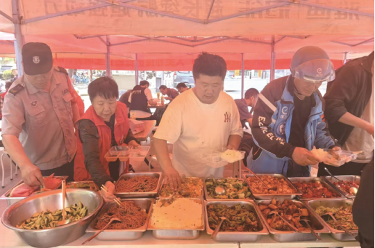 江东街道请新就业群体吃顿便饭。
