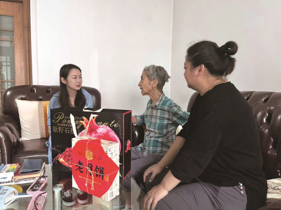 社区工作人员上门看望老人。