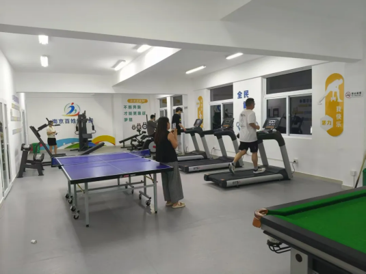 改造后的百姓健身房占地面积160平方米,可服务小区全部1700余名居民,健身设施覆盖青年、儿童、中老年等不同群体需求。室内配备跑步机、椭圆机、健身单车等多种有氧设备,设有力量区与辅助器材区,并添置台球桌等休闲设施。此外,空调、防滑地垫等贴心配置,确保健身环境四季舒适、安全无忧。