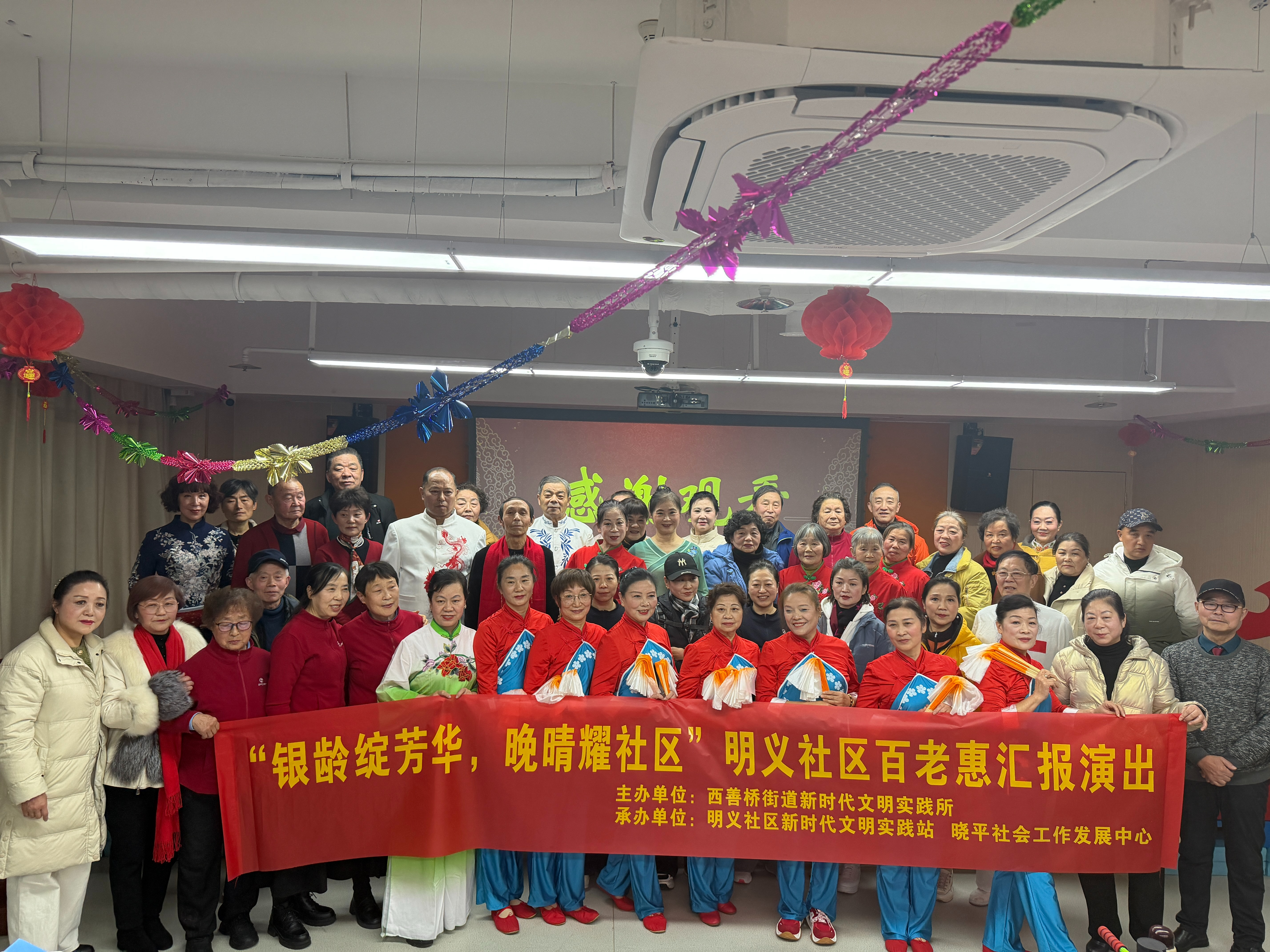 1月14日,雨花台区西善桥街道明义社区“百老惠”开放大学2025年度汇报演出精彩上演。这场由明义社区联合晓平社会工作发展中心共同举办的“银龄才艺秀”,不仅是一份沉甸甸的“期末答卷”,更是一曲老有所学、老有所乐、老有所为的时代赞歌。