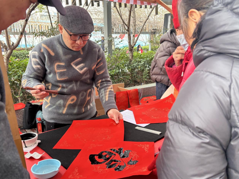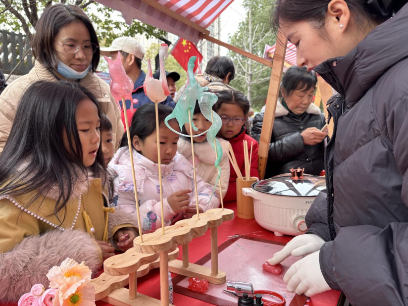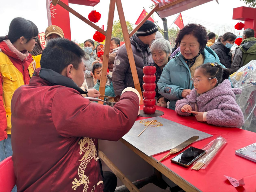 现场设置的各类摊位,成为邻里互动、服务群众的重要平台。非遗面塑、吹糖人、糖画、剪纸、书法写春联等摊位前人头攒动,民间艺人现场创作,将新春的祝福送到居民手中;免费磨刀、理发、测量血糖血压、口腔健康咨询等便民服务摊位前,志愿者们热情服务,切实解决居民日常生活中的小难题;反诈宣传、生态环境宣传等政策宣传摊位,网格员与工作人员耐心讲解,引导居民提高安全防范意识、践行绿色生活理念……“陌生邻里”在烟火气中渐渐熟悉,让网格真正成为“有温度的大家庭”。