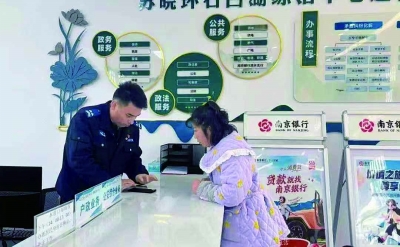 苏皖环石臼湖综治中心工作人员给居民办理业务。 市委政法委供图
