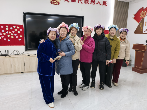 最后的“创春”环节,居民们在志愿者指导下,兴致盎然地制作仿古“簪花”。挑选花瓣、组合造型、固定成型……大家从生疏到熟练,一朵朵独具匠心的绒花、绢花在指尖绽放。制作完成后,居民们欣喜地互相佩戴、展示。“看我做的这朵,和我这发型挺搭配的!”张阿姨自豪地向邻居展示自己的作品。集体合影时,大家头戴自己制作的“春天”,脸上洋溢着创造美的成就感与满足感。