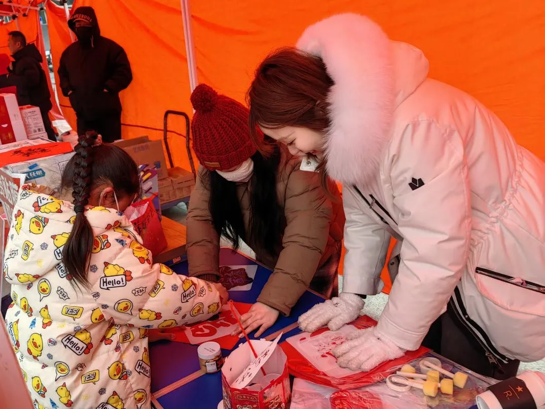 “心光集市”坚持“惠民”与“育民”相结合,将非遗体验、国潮雅韵、书香阅读等文化元素深度融入市集烟火,聚力打造赓续传统文化、强化情感认同的精神地标。春节期间,集市现场漆扇、扎染、糖画等非遗传承项目引人驻足,拓印、写福、赠联等暖心互动环节接连上演。居民们在沉浸式体验中感悟技艺之美,在亲手实践中涵养文化自信。“国风绘梦”“指尖承韵”等手工文创妙趣横生,“墨卷氤氲”“书香雅集”等民俗分享雅致温馨,让传统节日与现代文明在交融中焕发新意,在交汇中相映生辉。这场观照古今的温暖叙事,推动“心光集市”从单一的物资交流场所,升级为文脉传承与情感联结并重的社区文化“会客厅”。