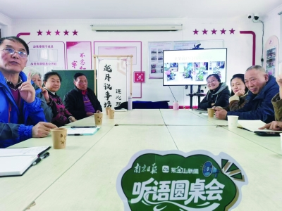 共享花架怎么建?大家一起来商讨。 南京日报/紫金山新闻记者 李花 摄