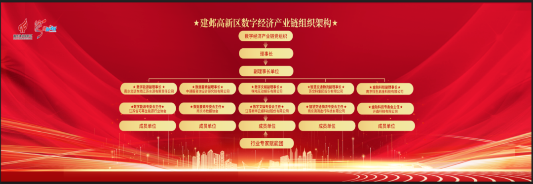 活动现场,建邺高新区数字经济产业链党组织架构、“链聚红新”产业链党建提能升级十大行动、新兴领域党建强企惠企十件实事正式发布,标志着建邺高新区产业链党建品牌从“塑形”向“铸魂”深化。最引人注目的是数字经济产业链“1+1+N”创新架构。即整合1个数字经济产业链党组织,统筹产业发展全局,将党的领导嵌入产业链“神经中枢”;设立1个理事会,由园区党工委书记任理事长、龙头企业负责人任副理事长,构建“党政统筹+企业参与”双轮驱动机制;聚焦“7+X”数字经济赛道,设立专业委员会,覆盖N家上下游企业,并组建由政、银、校、研等组成的专家赋能团,实现“政策直达链上、资源精准触达”。