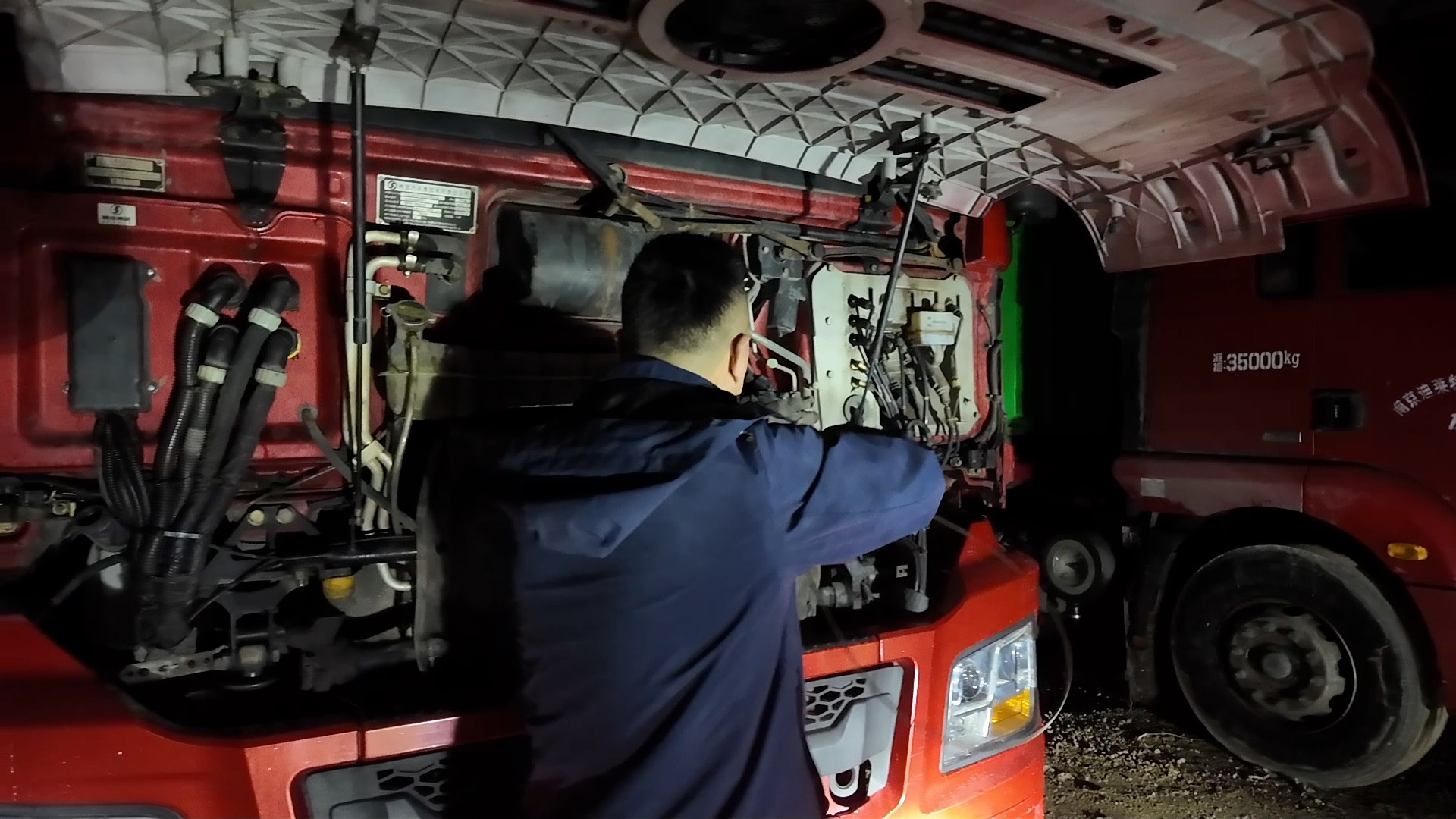 韩坚的卡车就停在码头对面的停车场里,韩坚说,卡车是他的第二个家。对这个“家”,他也很是爱护,查查机油尺、看看油箱盖、敲敲轮胎、擦擦反光条,这都是他每天上车前必做的事。
