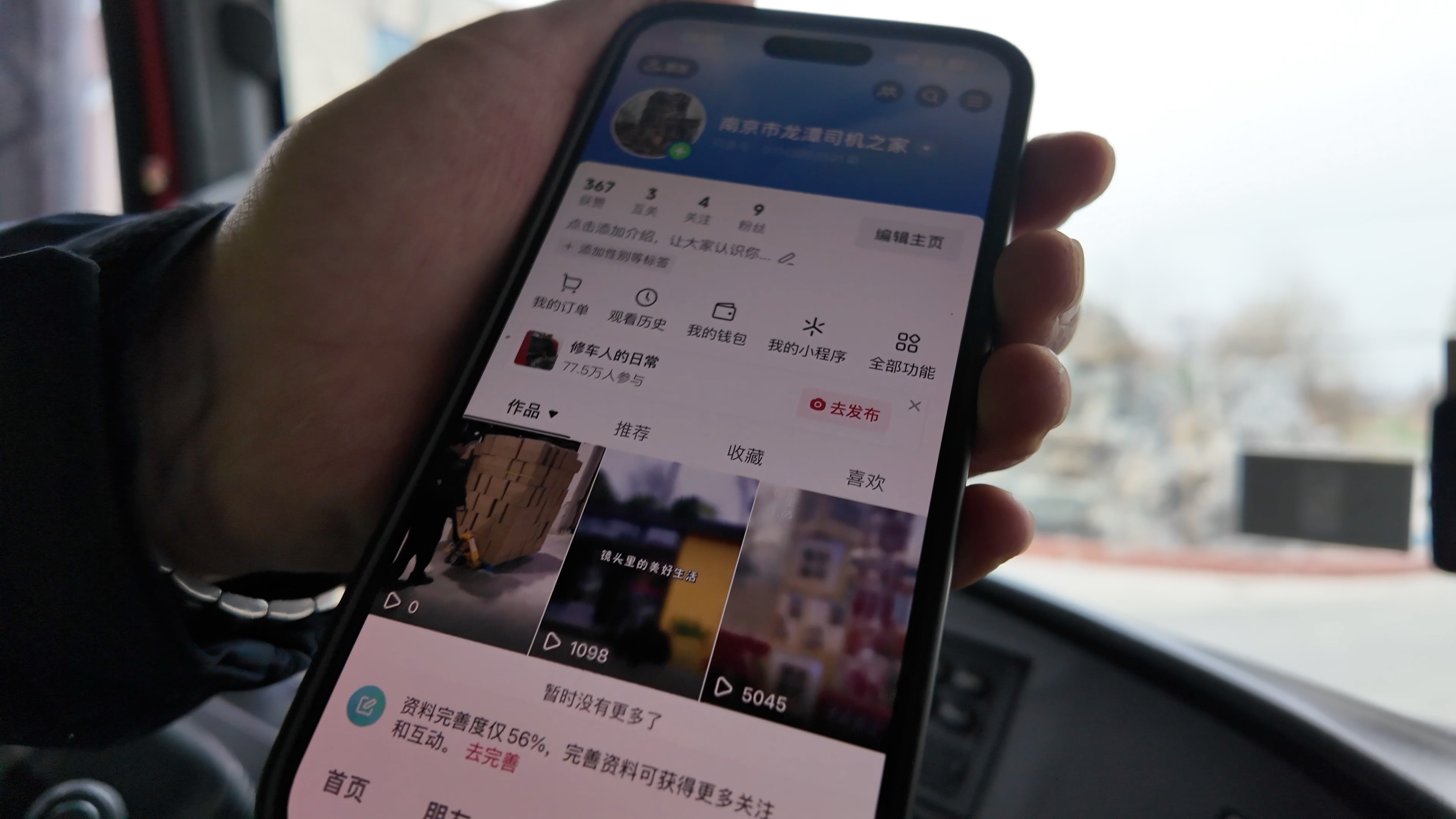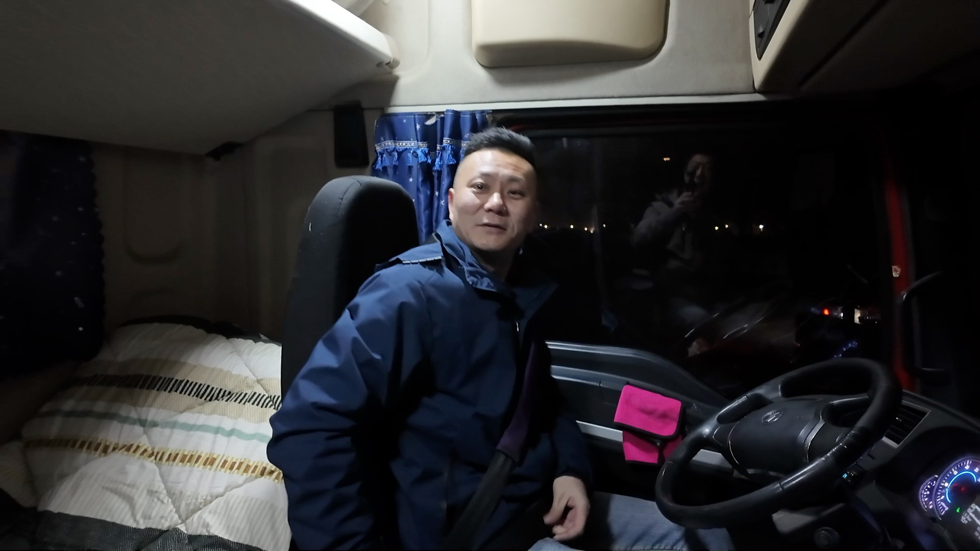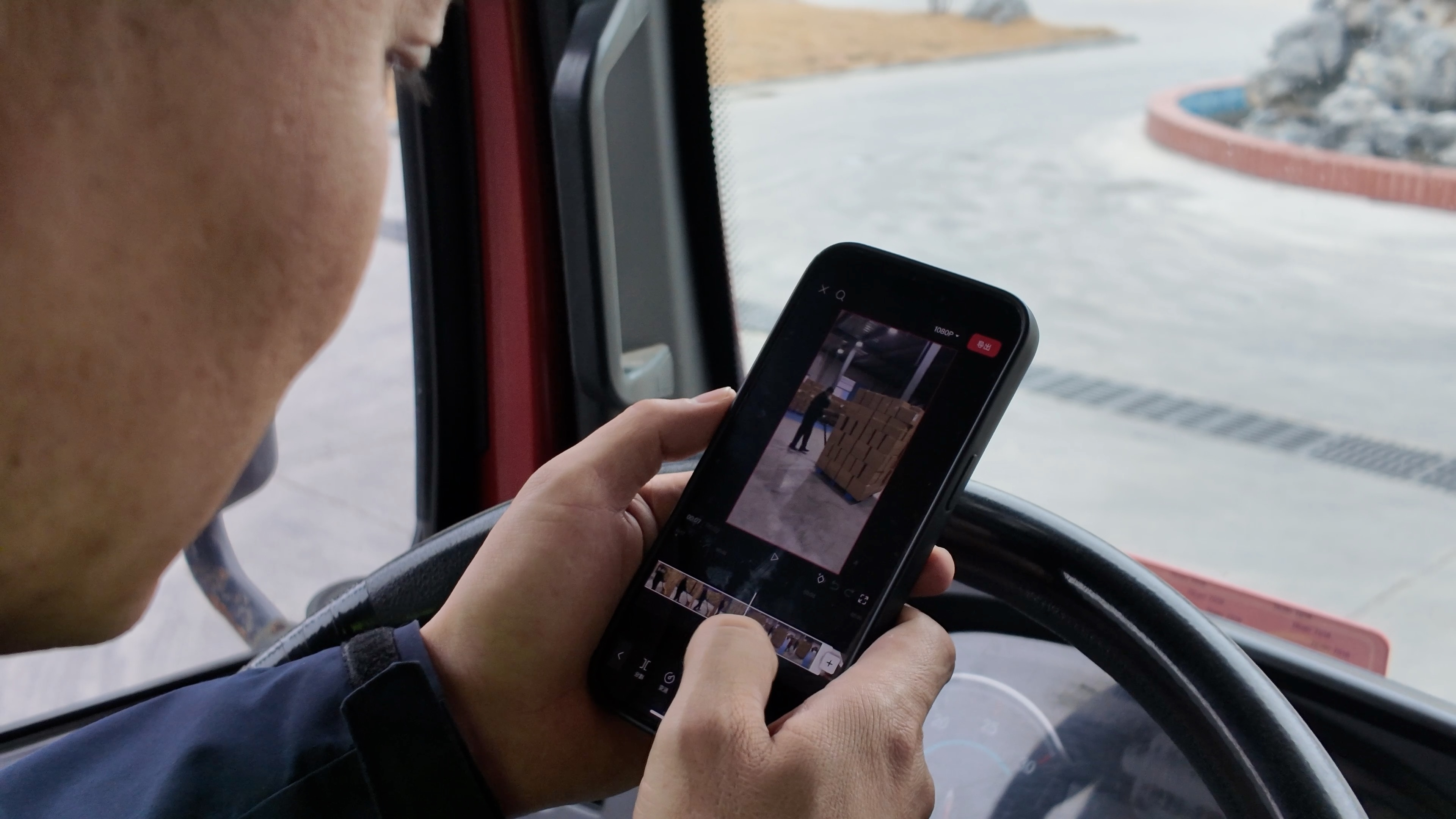 因为起得太早,我坐在驾驶室里迷迷糊糊睡着了,再一睁眼,韩坚旁边正在摆弄手机。刚刚拍的小视频已经发在了抖音上。韩坚说他在卡友圈里也是个“网红”,他喜欢记录自己的工作,分享在抖音上。