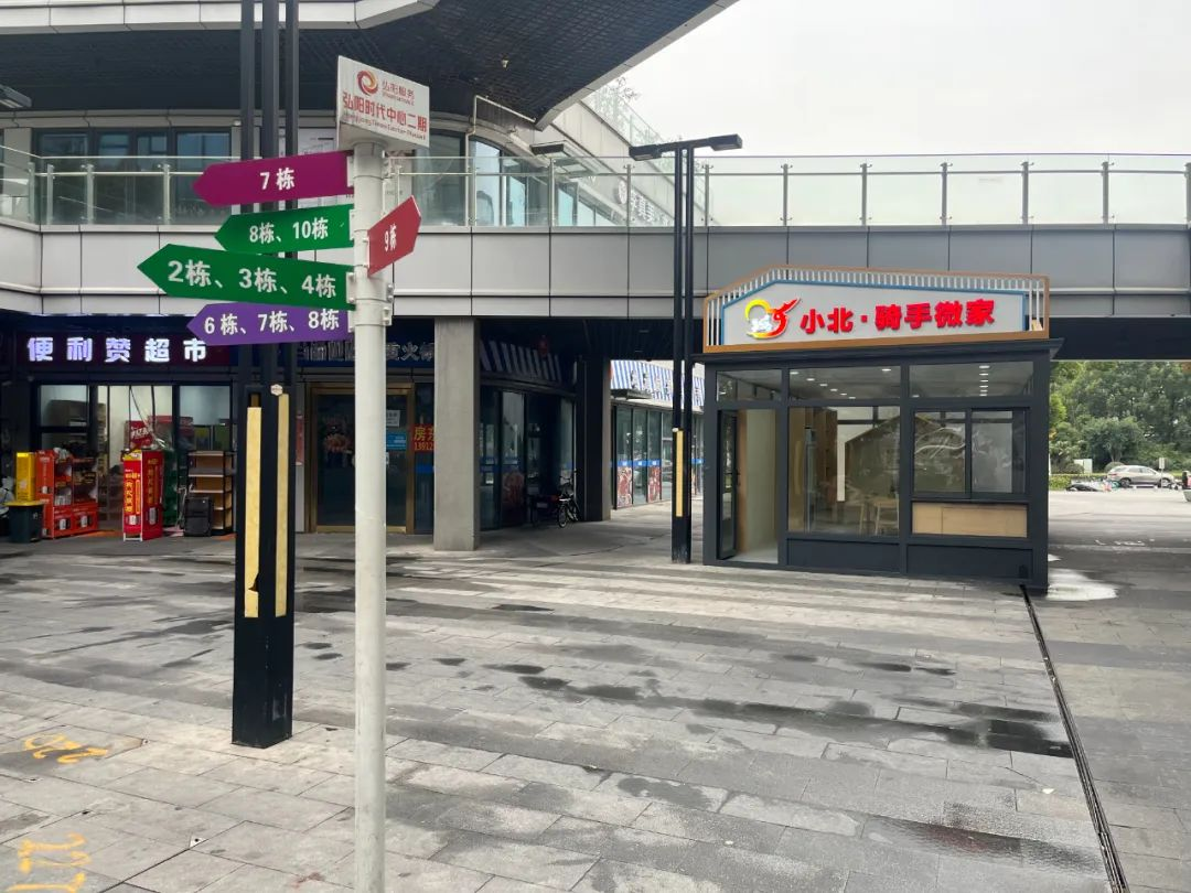 商铺之中,有一家明亮的小屋格外显眼,门头上“小北·骑手微家”几个字显眼而温暖,这就是新建的骑手驿站,即将面向骑手们开放。