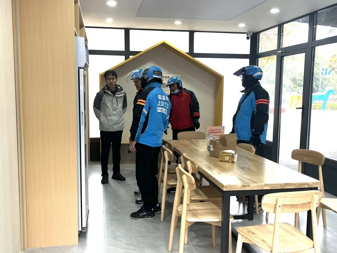 “他们都是‘众包骑手’,也就是兼职的骑手,因为没有固定的站点,日常休息自然也没有固定的地方,这里是他们聚集的重点区域,所以在这里设置驿站也有这方面的考虑。”