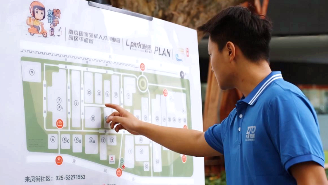快递员按指示牌寻找具体楼栋