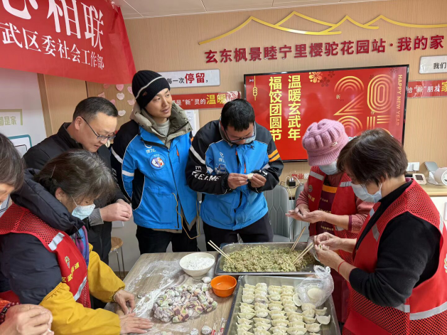 春节期间,玄武在全区范围内开设“暖“新”团圆宴”,邀请新业态从业人员包饺子、吃年夜饭。除在7个街道社区设点外,恒丰银行食堂、百子红社区食堂、“宁小蜂”驿站等也开设专场,1月24日-28日间,全区共组织“暖“新”团圆宴”10余场,新业态从业人员、两新组织人员约200余人参加。
