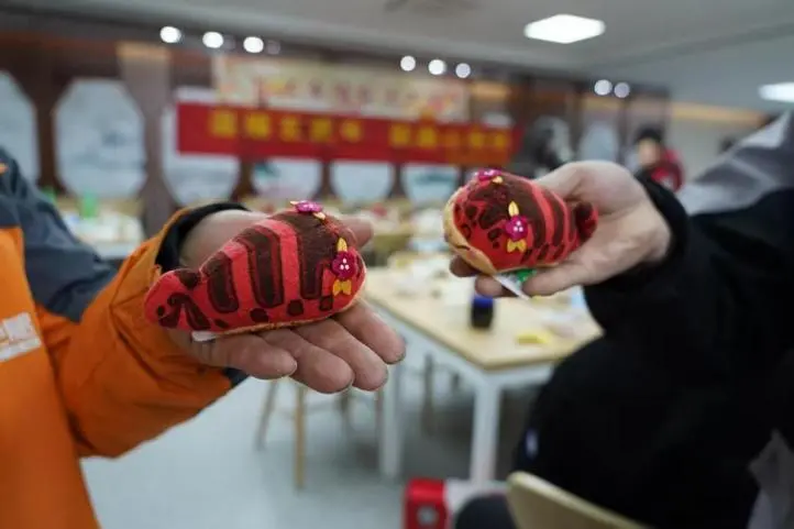 灵蛇献瑞,福满人间。此刻,“暖‘新’团圆宴”红山社区点正张灯结彩、人声鼎沸,一盘盘热气腾腾的饺子、一道道色香味美的菜肴正端上餐桌,桌旁围满了前来吃团圆饭的快递外卖小哥、网约车司机、网络主播等,大家相互交谈分享着,脸上洋溢着幸福,“今年不能赶回老家吃团圆饭,本来还有些遗憾,但没想到政府还记得我们,喊我们一起来吃年夜饭,可太幸福啦!”活动现场,不仅包饺子、吃年夜饭,还设置了写福字、写对联,剪窗花、拓印、投壶等传统文化体验区,让大家在吃饱吃好的同时,加深对春节民俗的认识和了解。