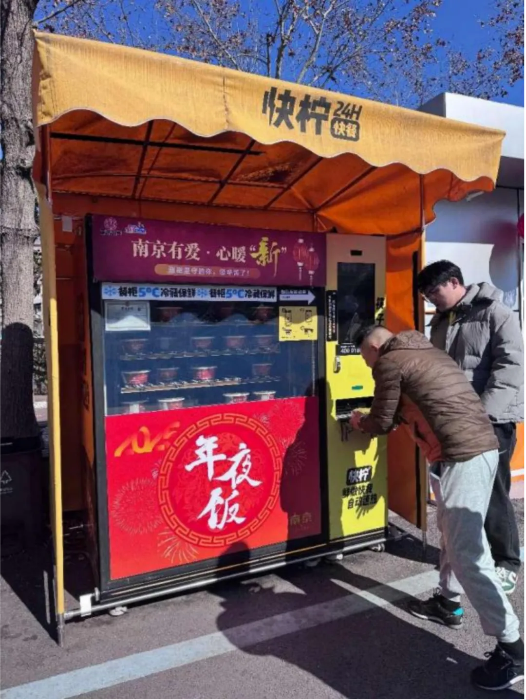 1月28日,2025年的除夕,阳光格外明媚,早上10点半,位于南京湖西街柚子充电的交通“宁小蜂驿站”热闹起来,黄色的驿站小屋被红色的中国结、窗花打扮得格外温暖,小屋旁的是装得满满当当的盒饭机,开网约车、出租车的师傅们已经在盒饭机前排起了长队。这是2025年“南京有爱·心暖‘新’年夜饭”的活动现场,今晚,他们将依旧奔驰在南京街头,送人们奔赴团圆的饭桌,自己却不知道几点才能吃上饭,南京交通给他们准备了一份特殊的年夜饭,全市供应6000份,免费领取。