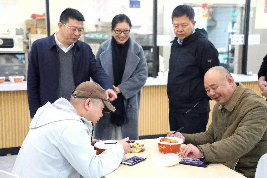 (南京市交通运输局局长宗仁在交通“宁小蜂驿站”视察年夜饭发放,慰问司机)