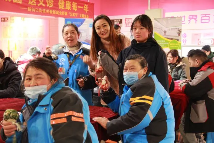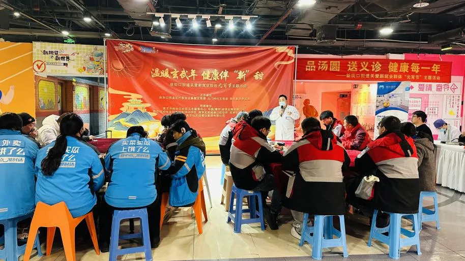 “平时总是忙着给这一栋楼客户送外卖,从来都没上来过,今天能有机会进来看看,还和大家一起吃元宵,真的是让我感受到了家的温暖啊。”此刻,新世界百货二楼中庭挤满了外卖小哥。芝麻馅、花生馅,一碗碗热腾腾的元宵被端上了桌。除了有元宵吃,新街口社区卫生服务中心还现场开设医疗义诊服务,同时向大家宣传春季传染病防治知识等。