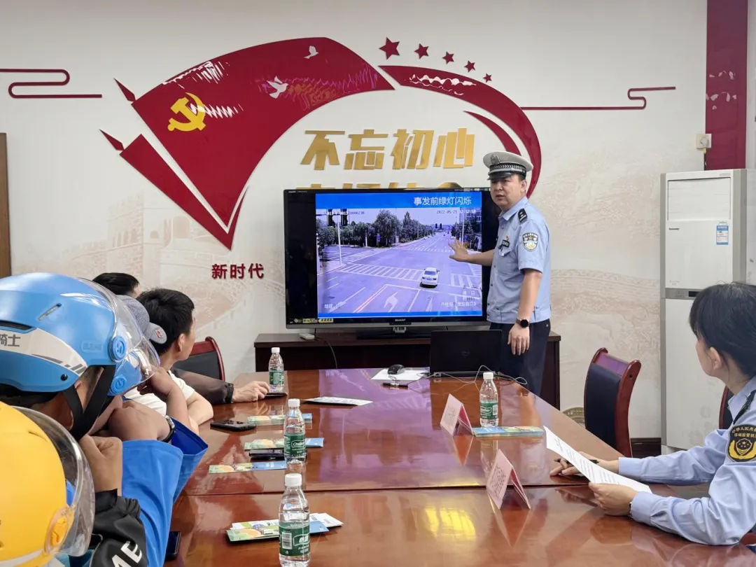 六合区外卖行业党委联动区交警支队开展“交通安全微课堂进站点”活动,交警依托近期本区域发生的外卖电动车事故,以“案例视频+案例解读”形式分析责任处理相关知识,为外卖骑手送上定制的“15分钟微课堂”交通安全课程。