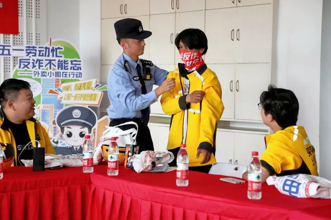 六合区雄州街道举办“警企携手护骑手”反电信诈骗主题宣传活动,民警结合“虚假中奖”等常见诈骗类型,剖析作案手法、拆解话术陷阱,传授防范技巧;邀请骑手化身“反诈宣传员”,组建反诈宣传联盟,在送餐时将反诈知识传递给居民朋友。