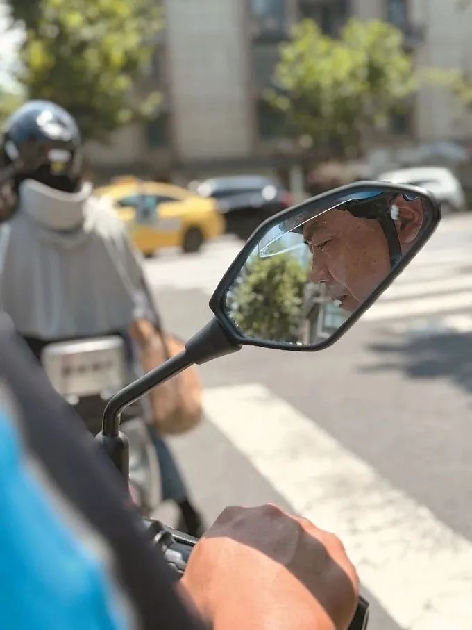 “入伏鸣蝉闹,炎天烈日烧”,不是说说的。酷暑盛夏,马路温度能够达到40℃、50℃,尤其是中午12点至2点前后,沥青路面最高能达到60℃。虽然南京马路上浓荫密布,但也挡不住热浪袭扰,骑手们顶着烈日工作,衣服常常被汗水浸湿又晒干,循环往复。