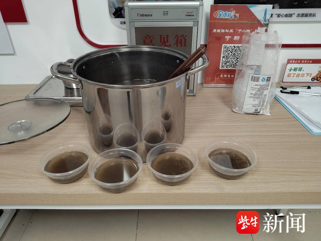 为及时给酷暑中的户外劳动者解暑补水,康藏路社区联合益康社区居家养老服务中心,从即日起的一个月内,每日供应绿豆汤。每天清晨,益康养老社区服务中心工作人员便将熬好的绿豆汤分装在保温桶中,并摆在驿站最显眼的位置,确保小哥来驿站歇脚的时候就能喝上解暑又可口的绿豆汤。同时,驿站里的饮水机旁,桶装水随时补给,冰箱里还整齐码放着冰镇矿泉水,让在高温下奔波的劳动者能随时歇歇脚、喝口水。