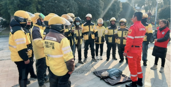 有了清晰的目标与内容规划,如何确保培训真正落地、让外卖员学得会、用得上,成为项目推进的关键。为确保培训内容实用、易懂,项目特别邀请了南京人防救援大队大队长徐刚担任培训导师。“徐老师有丰富的实战经验,他为禄口的外卖小哥专门设计了课程和授课方式,注重实操、简化理论,让大家在短时间内就能掌握关键技能。”项目负责人姚艳说,“我们希望通过系统化培训,既提升骑手自身的安全防护能力,也让他们成为社区应急体系中的重要补充力量。”