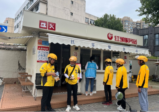如今,依托“红邻帮”云治理平台,作为线下的延伸,驿站已从基础休憩点升级为综合治理枢纽。骑手可以注册成为“移动网格员”,参与交通劝导、隐患上报,凭借“文明积分”兑换生活用品、民生服务等权益。截至目前,已经吸纳30余名骑手小哥加入,他们发挥“熟门熟路”优势,化身安全监督员、文明督导员,成为城市精细化治理的“神经末梢”。今年以来,累计报送隐患线索134条,发放宣传材料2000余份,商圈周边非机动车乱停放问题显著减少,基层治理韧性有效增强。