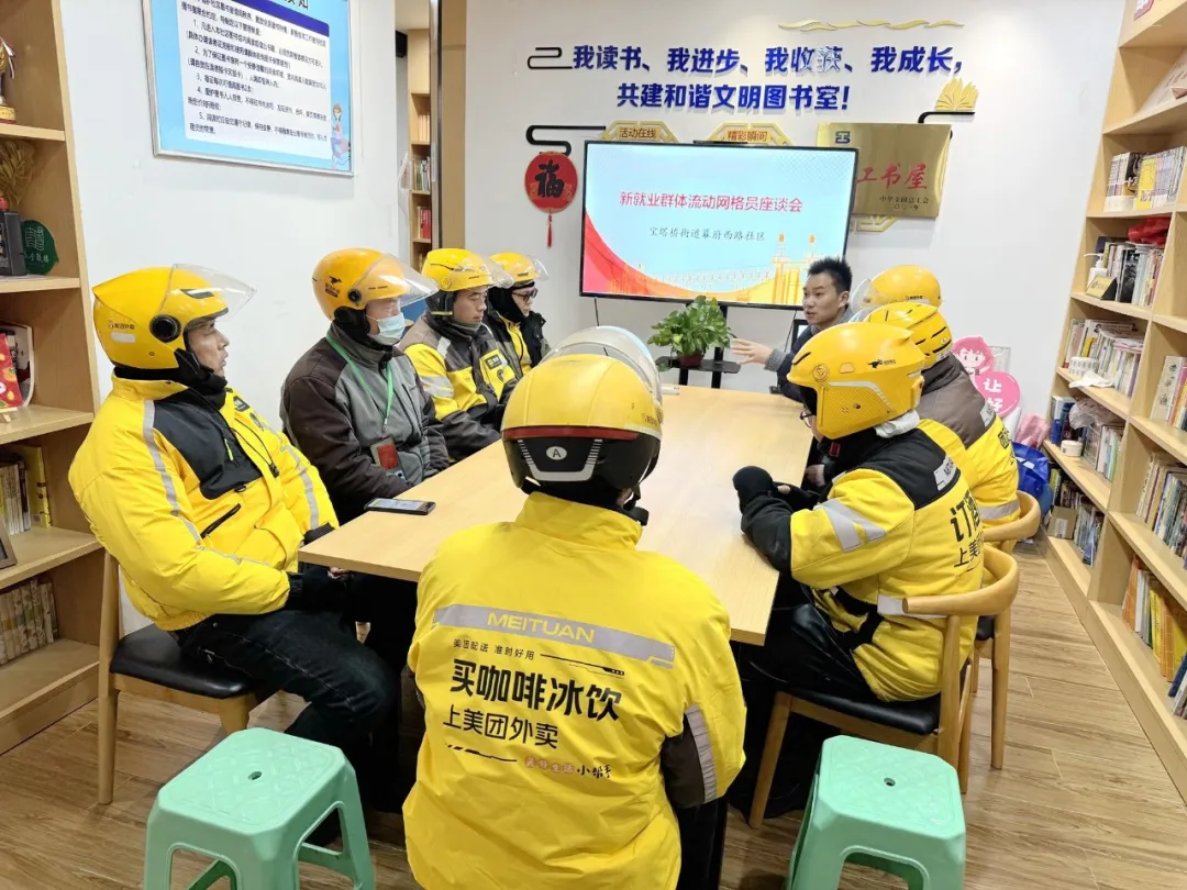 在幕府西路社区的“宁小蜂”驿站,每月定期召开的“流动网格员座谈会”已成为汇集民情、汇聚民智的重要平台。骑手代表围绕城市管理、社区服务等议题畅所欲言、建言献策。街道还联合司法所设立专门法律咨询窗口,为骑手群体提供劳动权益、交通事故处理等方面的专业法律服务。