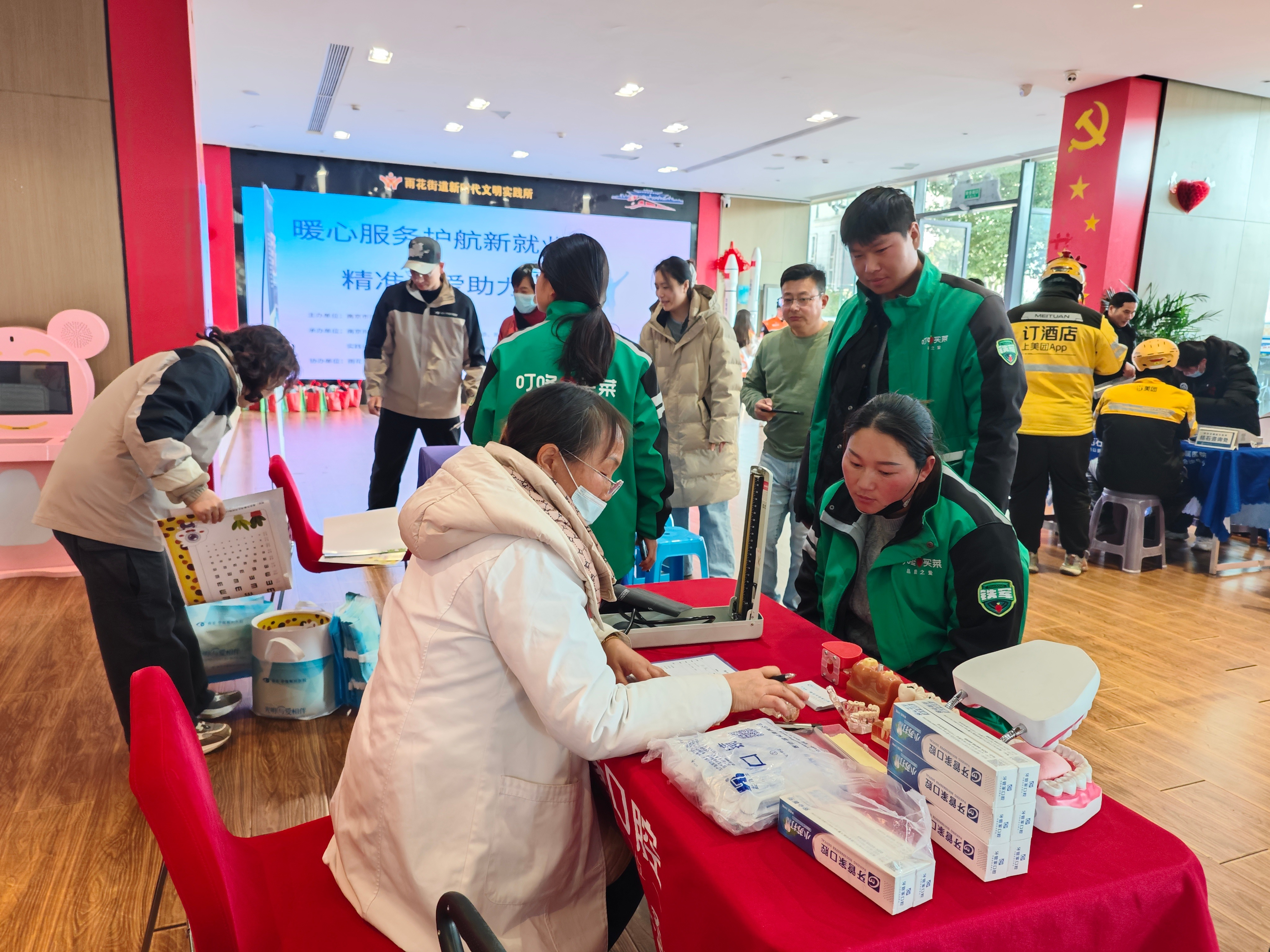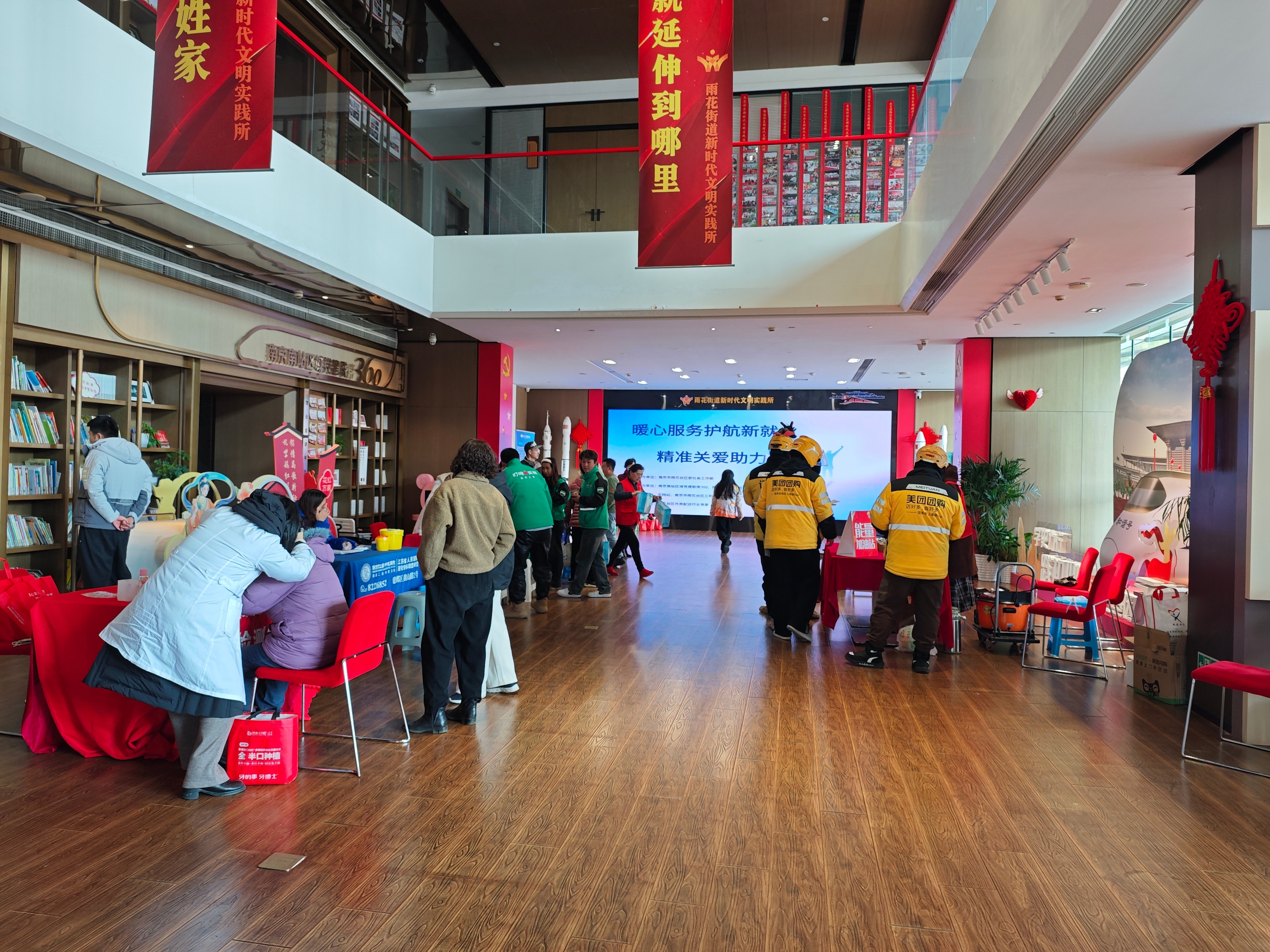 1月13日,南京市雨花台区“暖心服务护航新就业,精准关爱助力新生活”系列活动在南站党建360空间温情启幕,本次活动由雨花台区委社会工作部牵头主办,依托“有雨友爱”服务品牌下的“宁小蜂”驿站,精准对接新就业群体在健康保障、权益维护、生活服务等方面的核心诉求,搭建四大主题服务区,让关怀直达一线劳动者。