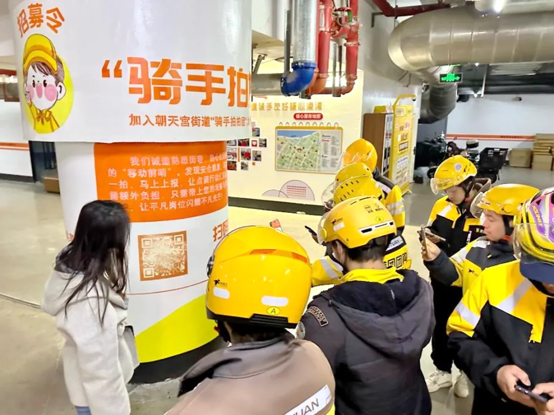 街道邀请外卖骑手加入“骑手拍拍团”。