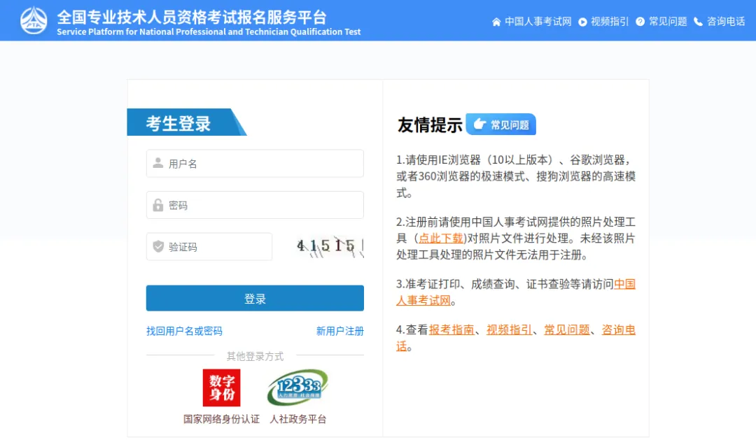 进入全国专业技术人员资格考试报名服务平台。