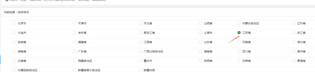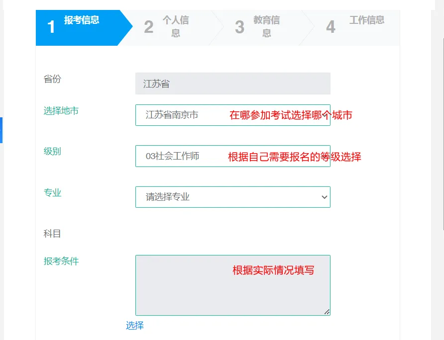 (1)选择省份和地市。这里选择的就是要参加考试的城市,注意需要填写地级市。