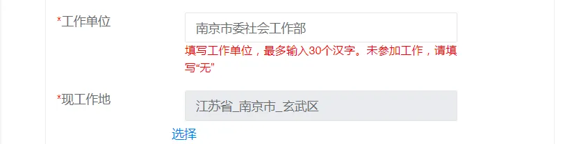 (13)工作单位要写全称,建议选择合适的单位,方便带机构组织代码备案。(特别提醒:现工作地要选到区哦!)