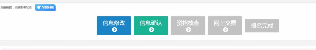 9.网上缴费。报名成功后会显示流程进度,需要在规定时间内及时缴费。审核通过后,直接点击“网上交费”进入缴费;没有通过的要人工审核通过后才能缴费。缴费前可以进行报名信息修改。