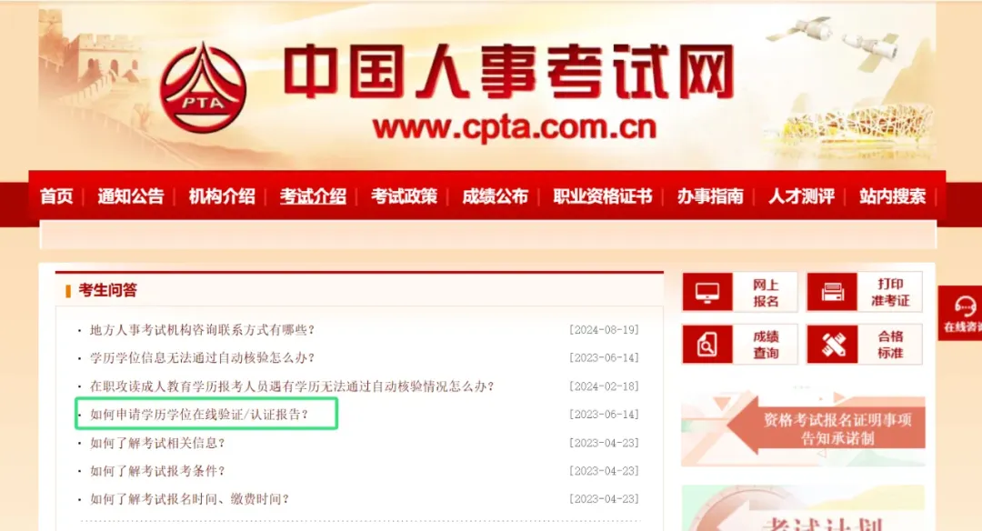 特别提醒:为加强报名证明事项告知承诺制事中监管,如报考人员提交的境内高等教育学历学位信息无法通过在线自动核验,应在报名前及时登录中国高等教育学生信息网(学信网)进行验证/认证,下载相关PDF格式在线验证/认证报告,报名期间按报名地考试机构要求上传相关验证/认证报告,接受人工核查,具体操作方式参见中国人事考试网考生问答栏目内容(http://www.cpta.com.cn/question/1525.html)。