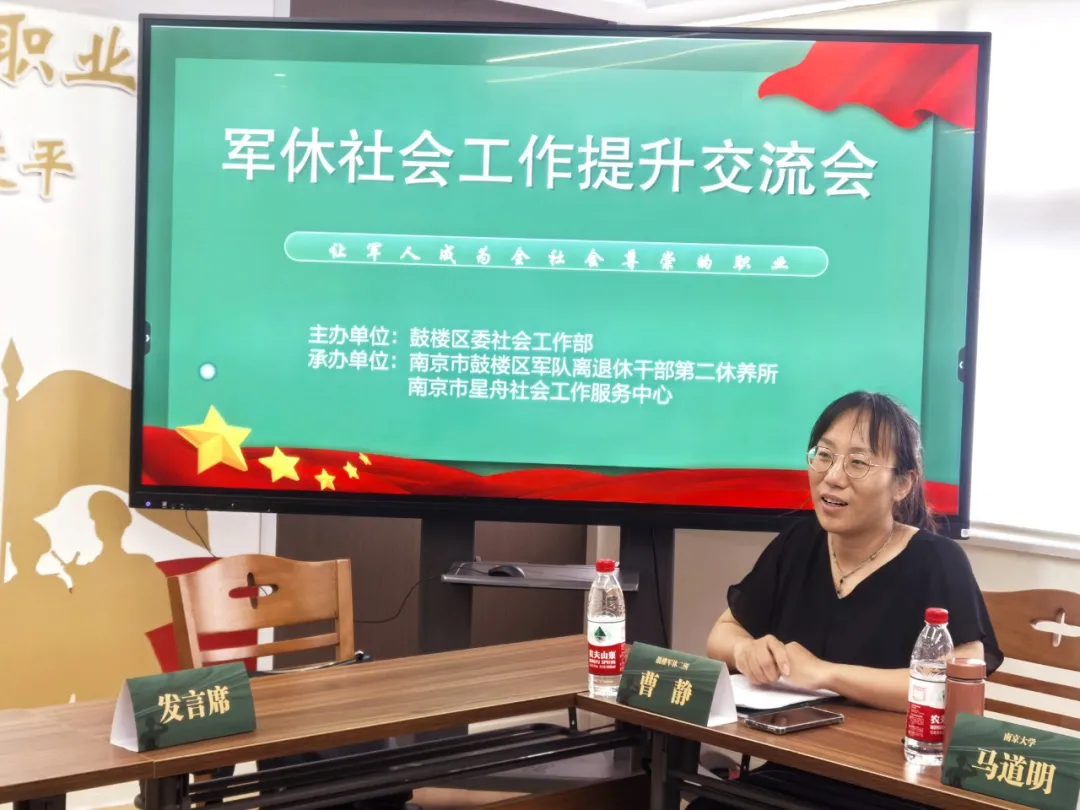 退役军人事务部门成立后,社会工作迅速融入退役军人服务。2021年,鼓楼区首个军休社会工作阵地——乐龄中心揭牌。中心携手枢纽型社会组织,实现资源多元链接。从最初的一小间活动室的免费便民服务开始,中心先后开展“百年正风华”“风景半边独好”“今又重阳”等系列主题活动,连续开展“岁岁阖乐”全家福拍摄;与周边医院、社区、学校签订共建协议,引入多家优质养老机构,形成具有军队特色的“点、线、面”工作模式。社会工作部成立后,军休社会工作更上一个新台阶。2024年,军休社会工作新质讲堂启动,介绍军休社会工作、军休服务社会化领域的创新做法,邀请高校老师、基层实务专家从和谐社区、困境妇女、业务提升等多维度出谋划策。