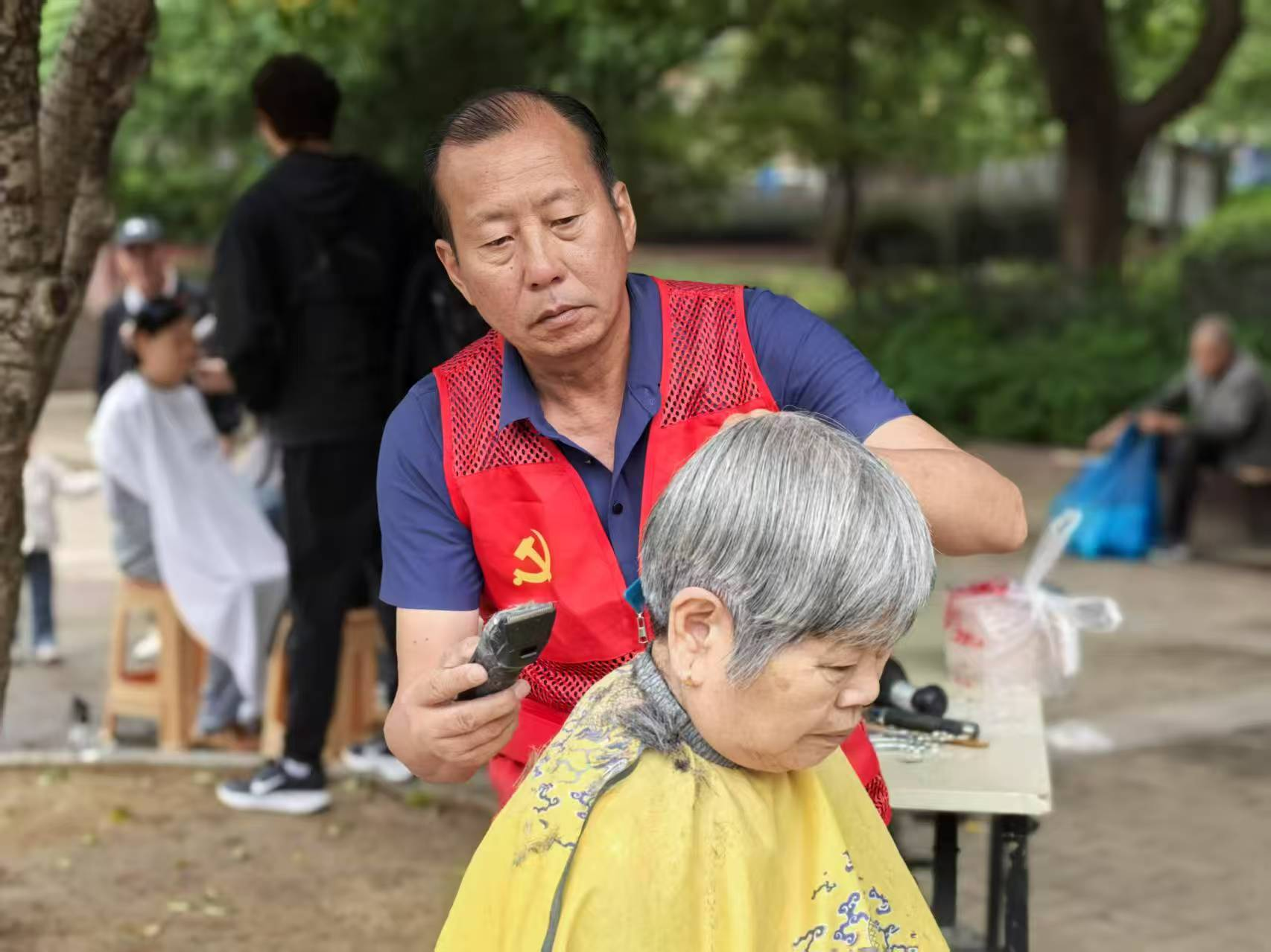 更让人感动的是,他还组建银发互助队,免费为居民提供理发服务。仅刚成立的3个月间,他和团队成员累计服务500余人次,最忙的一天接待了32位老人。