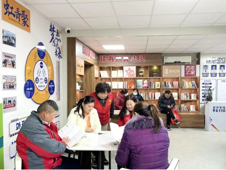 赛虹桥社区依托“彩虹阵”便民服务驿站开展志愿服务。